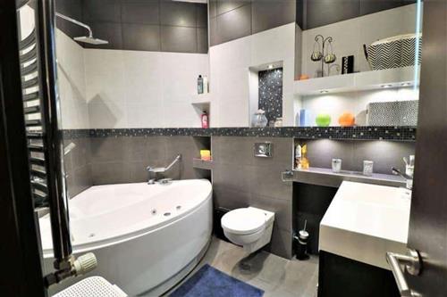 A newly renovated, uninhabited apartment for rent, in a newly built building. Pets are not allowed in the apartment. The building is protected by a private security service.