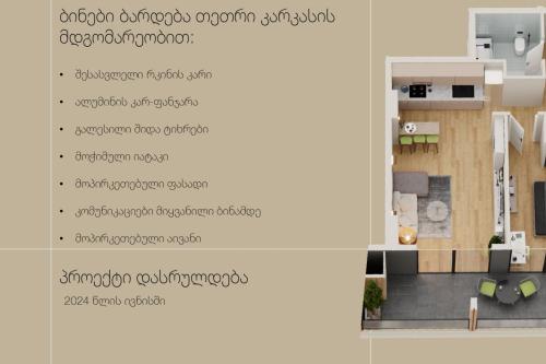 Monolith Green City - we offer a new premium class project in Ortachala, in an ecologically clean and green space, where a residential complex consisting of several blocks is created in a peaceful, comfortable and healthy living environment. The advantages of the complex are: location - located in the center of Tbilisi, 2.5 km from tourist areas (Abanot district, Metekhi Bridge, Narikala Castle, Botanical Garden and Cobblestone Square). away from Environment of the territory - squares, pavilions and a dendrological park with various unique plants will be arranged; The infrastructure of the complex includes a swimming pool, running and cycling paths, children's play areas, walking and sports fields, a kindergarten, a school and various commercial facilities. The completion dates of various blocks of the complex are 2023 and 2024. Internal interest-free installments are possible.