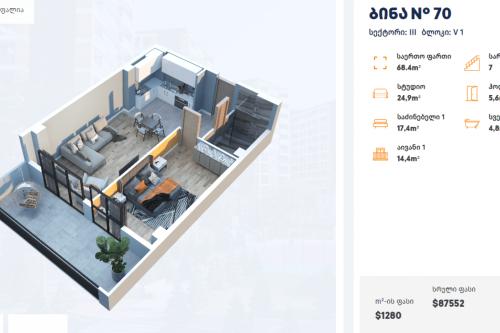 შეიძინეთ ბინა სააქციო ფასად. 87 552$ის ნაცვლად 80 712$ად.პროექტი სრულდება 2024 წლის ბოლოს. ბინა ბარდება თეთრი კარკასის მდგომარეობაში. პროექტის ფარგლებში აშენდება აუზი კორპუსებს შორის, რომელიც იქნება საერთო მოხმარების, შიდა ტერიტორიაზე გადაადგილება შესაძლებელი იქნება მხოლოდ ფეხით.შესაძლებელია შიდა განვადებაც.