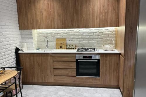 In Tsereteli, 100 meters from the Tsereteli metro station, a 3-room apartment for rent in a newly built building, furnished and equipped with the best views of the entire city.