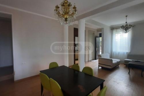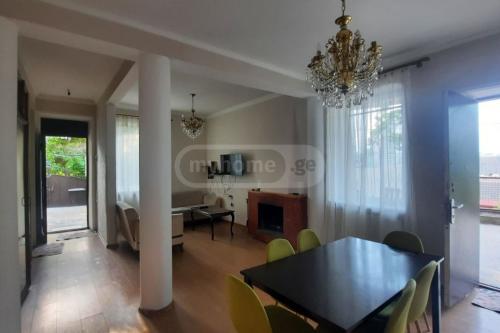 The first floor of a private house with an isolated yard and a garage is for rent on Tskvedadze Street in Vakeshi. The house has four rooms with furniture and new appliances. Layout: two bedrooms, common room with fireplace, kitchen and bathroom.