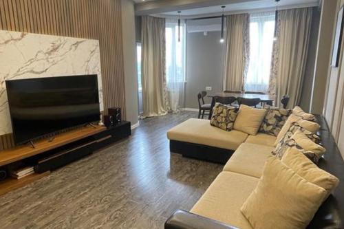 For rent on Vera, on Barnov street, near the round garden, as soon as you cross the Barnov bridge, in a brand new built very prestigious building, very prestigious and comfortable and central and in the best location in the city, at the intersection of Vaki and Vera. The building has a 24-hour concierge, security, video cameras around, with its own garage, uninhabited 133 square meter beautifully designed apartment, equipped with the best quality materials and modern appliances and furniture. Large living room, 3 bedrooms, one master bedroom with its own bathroom, the second with a separate wet room and a separate laundry room. There are no beds in the 2 bedrooms yet and they will be arranged according to the request, 2 bedrooms and one office room will be made. There are supermarkets, pharmacies, shops, cafes, ATMs and absolutely everything around. Very comfortable and bright apartment, the sunniest side, with a new central heating system that is very economical in winter, close to parks, round garden. All kinds of transport around. The photos show that it is made by one of the best designer projects for a completely comfortable life.