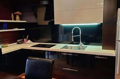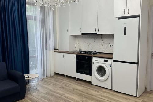 Furnished apartment, with Euro renovation and all comforts. There is a stop 5 minutes away from the apartment and a safe bridge to cross on the opposite side of the road. The apartment is served by a concierge for security, video cameras are installed everywhere. Two elevators on the chip passenger truck. Below the apartment is the shopping center Carrefour, Magnit, Nikora.