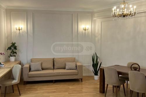 Newly renovated (uninhabited), bright apartment of 80 sq.m. with space. With a large studio room and an open, fully equipped kitchen, one bedroom with a large wardrobe, a bathroom and a sunny balcony. The house is fully furnished with furniture and appliances; Central heating and air conditioning are installed; There is a washing machine, a dishwasher, a TV, a vacuum cleaner.A quiet area, within walking distance to the Ministries of Justice and Finance, embassies located on Krtsanis Street, and Old Tbilisi. A number of chain supermarkets and pharmacies are located in the vicinity of the building.
