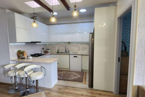 A 3-room, 120 m2 renovated apartment with furniture, 2 bathrooms, balconies is for sale on Ateni Street 168,000. There is a parking lot, children's area and a stadium in the yard.