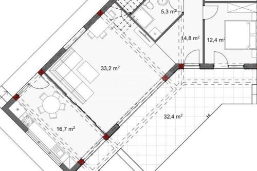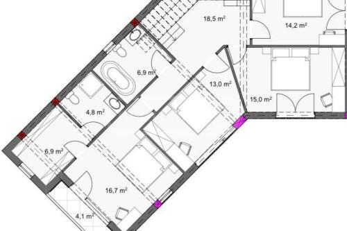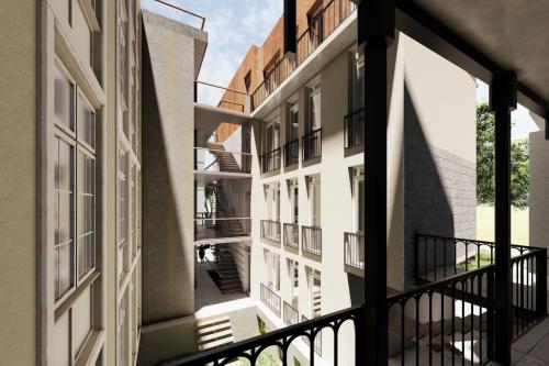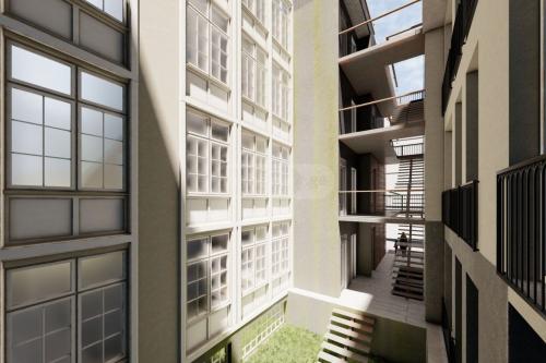 An apartment for sale in a premium class complex under construction by Roof Development in Gagarin, where the partitions have already been made and iron doors are being installed, it is built to the end of the building (all floors).According to the white frame, the apartment is ready for sale in the month of AprilThere is also a green school in front of the building