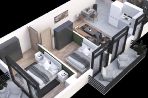 In a newly built building, 46 sq.m., 2-room apartment, with 1 bedroom, a green frame, both the living room and the bedroom open onto the balcony. All necessary facilities are nearby. The apartment is ready for renovation. Pay the amount of the meter