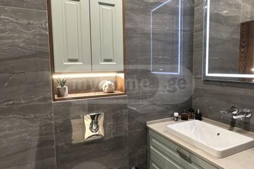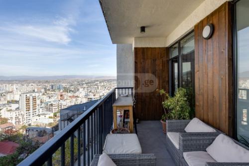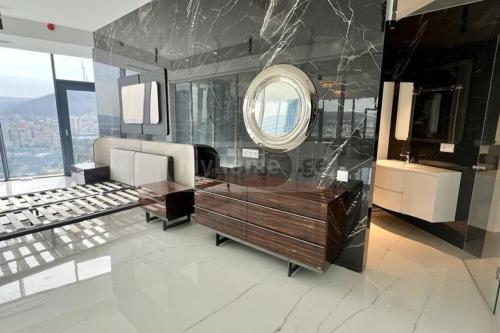 A newly renovated apartment with 3 bedrooms, two bathrooms, an independent kitchen and views of Tbilisi is for sale in a newly built building on Marabdi Street in Vake.