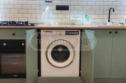 The apartment has central heating, air conditioning, washing machine, dishwasher, refrigerator, microwave oven, electric oven, gas cooker, TV