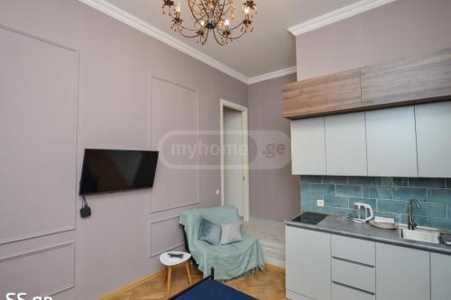 3 studio apartments for sale, each with its own kitchen and bathroom. With central heating (boiler), newly renovated, with furniture and appliances. The apartment is located near Rustaveli and is permanently rented to tourists