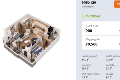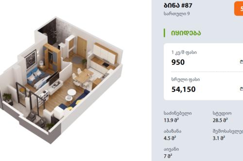 შეიძინეთ ბინა სააქციო ფასად. 87 552$ის ნაცვლად 80 712$ად.პროექტი სრულდება 2024 წლის ბოლოს. ბინა ბარდება თეთრი კარკასის მდგომარეობაში. პროექტის ფარგლებში აშენდება აუზი კორპუსებს შორის, რომელიც იქნება საერთო მოხმარების, შიდა ტერიტორიაზე გადაადგილება შესაძლებელი იქნება მხოლოდ ფეხით.შესაძლებელია შიდა განვადებაც.