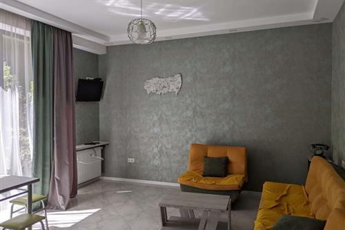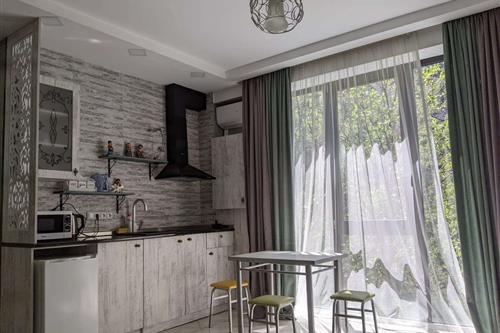 A 2-room apartment in a premium class hotel-type building on Amaghlebi Street in Old Tbilisi, Sololak. 1 bedroom, on the fourth floor. The apartment is served by a 24-hour concierge, the building is equipped with cameras. The apartment has a washing machine, refrigerator, TV, air conditioner, central heating, microwave oven, iron, hair dryer, electric kettle. WIFI and other necessary equipment.