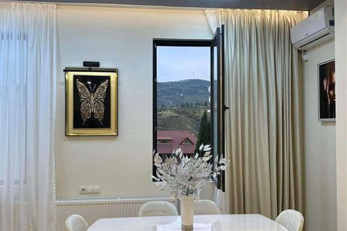 New apartment for rent in Vake, Tbilisi, near the 9th hospital. 17th floor, 130 sq.m. 3 room, 2 bedroom and studio type room. A large balcony with a view of Mziuri Park and the new road. Bathroom and toilet are separated from each other. Furniture and appliances are already in the apartment, everything is new and in perfect condition. In the prestigious Outlook Vake complex in the center of the city, any entertainment, food or shopping facility is within a 5-minute walk. The yard is protected by a barrier and is served by a 24-hour monitoring service, and there is also a small park in the yard.