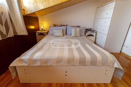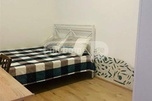 ბინა მდებარეობს აბაშიძის ქუჩაზე. არის მზიანი და საკმაოდ მყუდრო. აქვს აივანი და აღჭურვილია ყველანაირი ტექნიკით. ლოგინი Kინგ შიზე ზომის არის და ლეიბიც საკმაოდ კომფორტული.rnrn2 თვის წინასწარ გადახდის პირობით