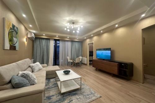 (Auto Translate!) In one of the best locations of Tbilisi, at 37 Chavchavadze Street, in Archi Tower, a newly renovated, uninhabited 3-bedroom apartment is for rent. It is fully furnished, with two bathrooms and an independent kitchen room. All rooms have a large balcony with impressive views on two different sides. The apartment is equipped with central heating and local air conditioning. The building is provided with 24-hour concierge and security services. On the first floor there is a Carrefour supermarket and various catering facilities; Also a fitness club, beauty salons and various purpose stores.