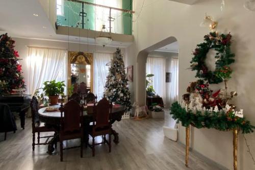 (Auto Translate!) A newly built, newly renovated country house is for sale in the prestigious district of Tskneti, in the middle of Tskneti, 30 meters from the church, on the most prestigious street, with furniture, appliances, complete set. 3 floors, 300 square meters. 4 bedrooms, 5 bathrooms, 2 large rooms (hall), 2 kitchens, fireplace, sauna, jacuzzi and other storage rooms. If desired, it is possible to add a pool to the yard.