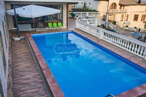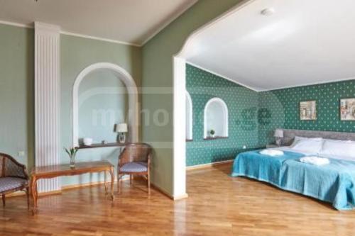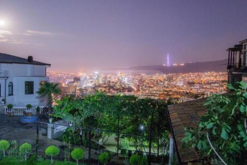 The hotel is located in Zemo Vedze, Meri Davitashvili 41, Saburtalo district. The hotel has 4 floors with the best panoramic views of Tbilisi. Hotel rooms meet modern standards, with high-quality elegant and ecological furniture, air conditioners, central heating, balconies, city views, cable channels, safe, minibar, bathrooms, bathroom accessories. The hotel area is 1200 sq.m., it includes 12 rooms of 3 different types with balconies, kitchen, living room, hall, guest room, tea room, Georgian wine cellar, 2500 sq.m gardens, outdoor swimming pool and bar. The hotel has the following types of rooms: family room 39 m² area (2 + 2), with a balcony overlooking the city. Standard double room, 25 m² area with a balcony overlooking the city. Non-smoking room, 30 m² area, (2 rooms + 1), with a balcony and a view of the city.