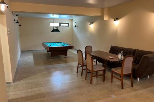 (Auto Translate!) A private house for rent in the countryside near Lis. In an ecologically clean environment, on the edge of a forest of almond trees. The house has panoramic views, both of the Lisi lake and the whole of Tbilisi. It is suitable for both residential and commercial use. The area of the house is 600 square meters, the area of the land is 820. The house has: 6 bedrooms (master bedroom). Cabinet. Isolated kitchen 27 sq m (ceiling height 4 m). Living room 80 sq m (ceiling height 4 m). Cellar 45 sq m. Mansard 60 sq.m. 7 bathrooms. The common terrace is 120 square meters. 4 isolated terraces of 11 square meters each. 2 balconies. External storage room 20 sq.m. Parking in the yard. Private parking for 8 cars near the yard. Outdoor swimming pool 10/4, paved beach