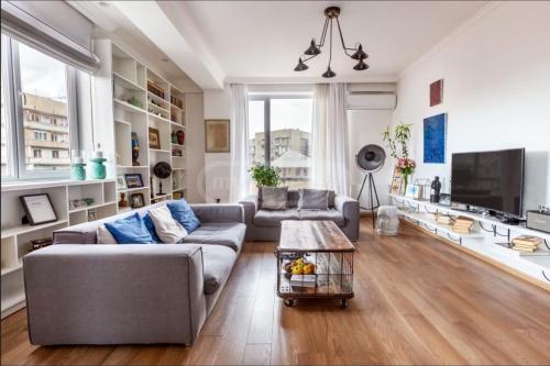(Auto Translate!) A renovated apartment of 135 sq.m. is for sale in the M2 complex located at 15 Kazbegi street. 3 bedrooms, studio type living room, 2 bathrooms, built-in kitchen furniture and appliances. 1 terrace with the best views of the city. The apartment is ideal for both office and living. The advantage of the project is a convenient location and well-equipped infrastructure, the complex is equipped with a modern fire protection system and is provided with 24-hour security. 23% energy efficiency ensures reduction of utility costs