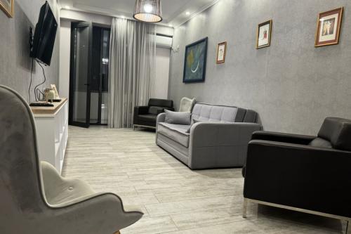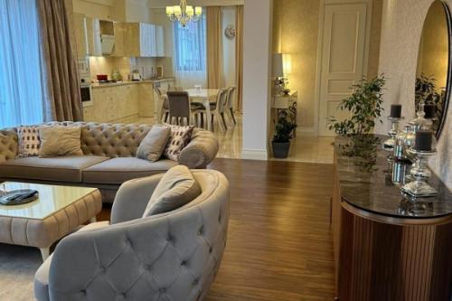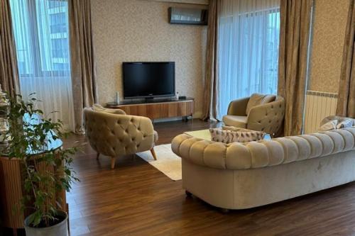 (Auto Translate!) 3-room apartment for rent, 3 minutes' walk from Vaki Park, area 120 m2, located on the 5th floor of the 8th building built in 2017. The apartment has 2 bathrooms, two balconies, two bedrooms, living room, kitchen, European quality renovation, built-in kitchen with hearth and oven, dishwasher, rooms are furnished, air conditioner installed. Video surveillance is installed in the house. The rental price is 2100 USD.