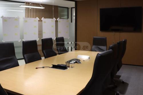 Newly renovated and furnished office space of 470 square meters is for rent in Vake. The office has been renovated to the highest quality and is equipped with all the necessary furniture and equipment. Suitable for large corporations, has 4 offices, a large conference room, 6 work spaces, kitchen, bathrooms. The office also comes with 5 underground parking spaces
