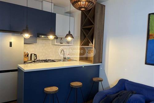 The apartment is almost uninhabited, it was closed most of the time. The apartment is on the front floor with appliances and furniture, with a panoramic view of Tbilisi. Rooms: hall, living room, bedroom, wardrobe room with Villeroq and Botch laminate, Grohe shower, Belgian laminate kitchen, aluminum wardrobe on the balcony, and also a separate aluminum central heating. Boiler cabinet built in my design bar stools and magazine table with walnut wood material