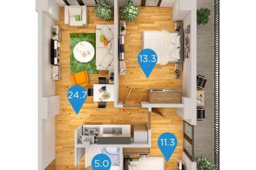 Price range $1245 - $1300 Arkhi Kikvidze garden is the first construction in A- Nadzaladevi district. The complex has 24 floors, where 346 apartments are located, it also includes commercial spaces. The project is being built with the highest quality construction materials. Stability and strength of the building is the most important component of the construction, so the company uses reinforced concrete of Heidelberg cement. To reduce utility costs, a German-made Itong block is used, which is energy efficient and will use 40% less energy to cool and heat the building. 2 fire and 2 standard elevators will be installed in the project. Also, there will be an open and closed parking lot that will accommodate 145 cars. HPL panels are used to cover the residential complex. In the complex you will find: · Water reservoir · Stadium · Parking · Playground · Square · Kindergarten