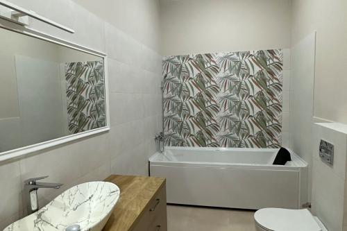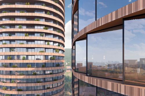 Price range $1750 - $2400 The project with distinctive architecture includes two residential blocks, commercial spaces, office spaces and a large inner courtyard. Its diverse environment is attractive for living, working and developing business. The green roof-terrace of the first floor of the complex blends harmoniously with the 3,000 square meter inner courtyard. The green zone of the project combines recreation and play spaces, a combined sports field, a bicycle path and offers residents a cozy space to relax from the street noise and environment. It should be noted in the project, a two-level underground parking lot for 400 cars, which is an integral part of a comfortable life in modern times.