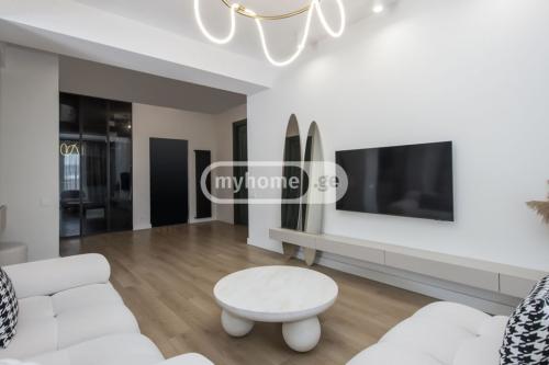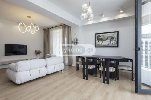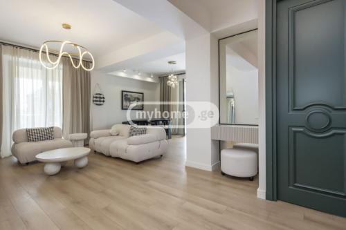 For sale in Vake, in the most desirable ecologically clean environment, in the heart of Mziuri Park, a beautiful apartment made in premium quality modernist style. The total area of the apartment is 123 square meters, with a beautiful summer area/veranda on 2 sides, one of which overlooks Mziuri Park, and the other overlooks Chavchavadze Avenue and Mtatsminda. Renovation works are done with the highest quality materials, American system electrical wiring, the bathroom is equipped with the highest quality faucets, Corian towels. All internal doors are of non-standard height, made in high quality, as for the furniture, motif and interiorism furniture and accessories create a special coziness in the interior. The house is hidden in greenery, peace and at the same time you are 2 minutes away from Mziuri on Chavchavadze Street. The complex is built according to world standards, observing all safety measures, well-furnished closed yard, the complex has a swimming pool, gym, 4-level parking, 24-hour security.
