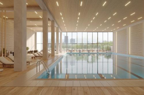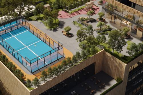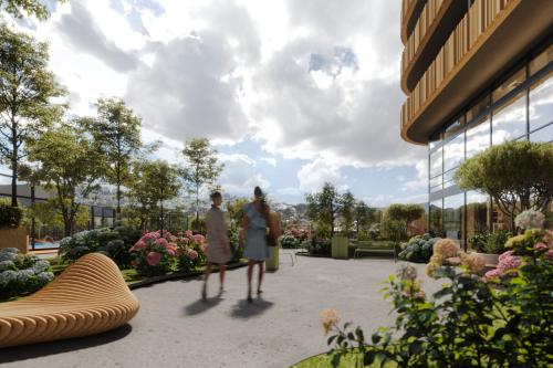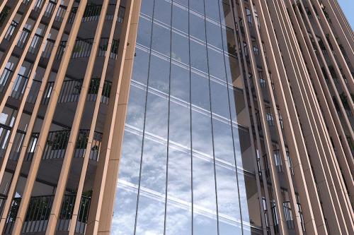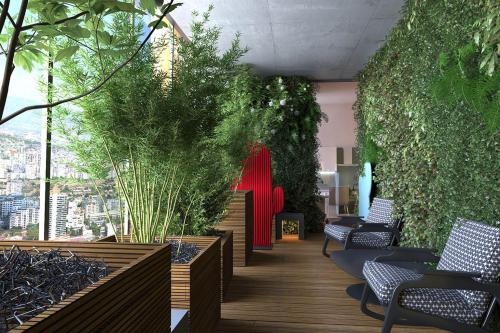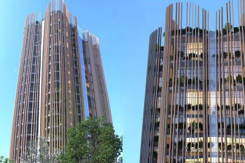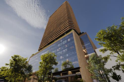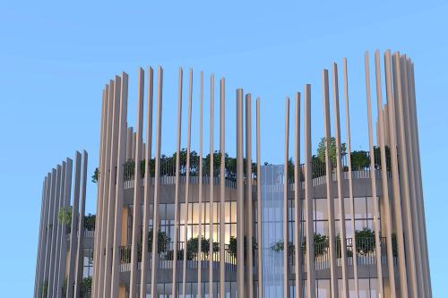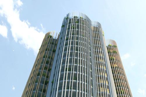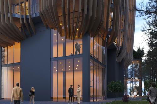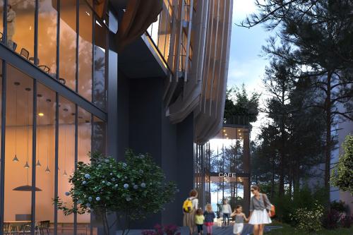 ხეების ჯგუფების მსგავსი სამი სხვადასხვა ტონალობისა და სიმაღლის შენობისაგან შემდგარი არქიტექტურული კომპოზიციის შექმნა სწორედ ამ ლანდშაფტმა და ნარგავებმა განაპირობა.ეს კონცეფცია კიდევ უფრო გამძაფრებულია შენობის თითოეულ სართულზე არსებული ბაღების, ორანჟერეების და მწვანე ნარგავების სიმრავლით.შენობის ექსტერიერის თემატიკა ლეიტმოტივად მიჰყვება აგრეთვე შენობის ინტერიერსაც, სადაც დიზაინში ხის ვერტიკალური ელემენტები და ბუნებრივი ტექსტურები ჭარბობს.თითოეულ სართულზე, ლიფტის ჰოლში ან კორიდორში მოხვედრისას ექსტერიერის მწვანე კონცეფცია მუდმივი თანამგზავრია და დიდი ვიტრაჟების საშუალებით ჰარმონიულად ერწყმის ინტერიერს.