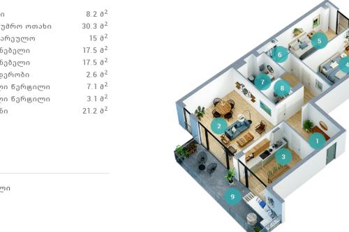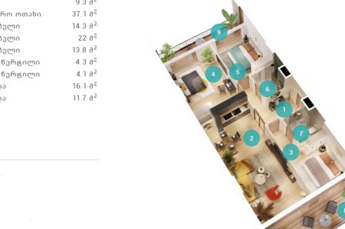 თქვენს წინაშეა 22.000 მ2 სამშენებლო მოცულობის მრავალფუნქციური კომპლექსი,ორ სართულზე განლაგებული 10000მ2 მოცულობის თანამედროვე სავაჭრო ცენტრი და 11 სართულიანი ეკოლოგიურად სუფთა,მშვიდ და უსაფრთხო გარემოში მდებარე 12.000 მ2 სამშენებლო მოცულობის საცხოვრებელი კორპუსი ულტრათანამედროვე ინფრასტრუქტურით:კინოთეატრი ‘’კავეა’’,უსაფრთხო საბავშვო მოედანიმიწისქვეშა დაცული ავტოსადგომისავაჭრო ცენტრი, ბრენდული მაღაზიებითთიბისი ბანკიბიზნეს ცენტრი მშენებლობა დასრულდება 2024 წლის თებერვალში