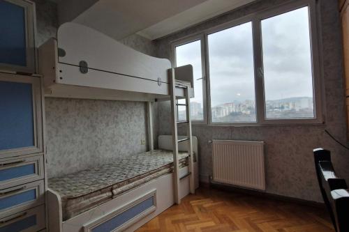 Three-room bright, cozy apartment for sale in Dighom massif. 2 bedrooms (each has primary lighting), living room and separate kitchen. The apartment has excellent views of the entire Tbilisi. A school and a kindergarten are close to the apartment.