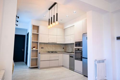 (Auto Translate!) Newly renovated, uninhabited apartment in the center of Tbilisi. A 5-minute walk from the Avlabari metro station in the multifunctional complex Square, where you will find various cafes and restaurants, a fitness hall and other spaces that will make your everyday life more comfortable and interesting. The apartment has a beautiful terrace. It is made in a modern, minimalist style and equipped with all the furniture and appliances for a comfortable living.