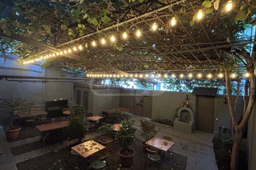 Until now, it was rented for a restaurant ("Blue Mountains") and therefore the restaurant's equipment is in the pictures. The restaurant sells its equipment and you can negotiate if you wish. The house has two floors, the lower floor is a semi-basement and was designed for a restaurant and kitchen, the upper floor has 3 rooms each with its own bathroom and also one bathroom is shared outside the house. The space is ideal for a restaurant or office, as the spaces are separated from each other and easily reconfigured.