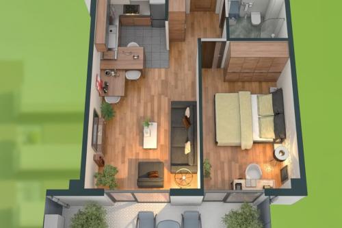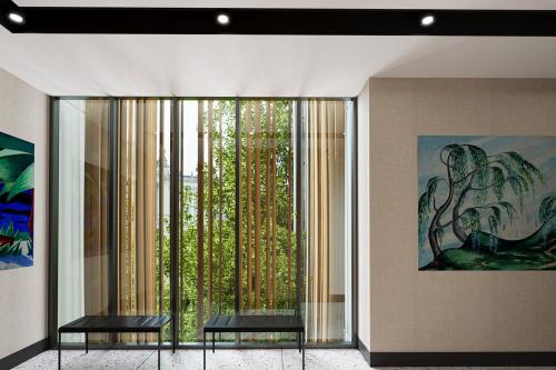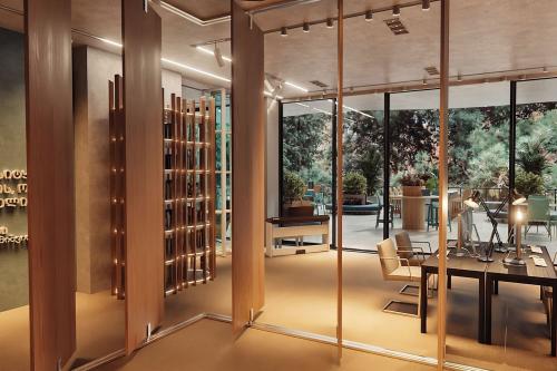 არქიტექტურული კონცეფციის მთავარ შთაგონებად იქცა, ამას განაპირობებს ტერიტორიაზე არსებული საზოგადოებრივი სკვერის ლანდშაფტი და მრავალწლიანი მწვანე ნარგავების ხეების კომპოზიცია, პლასტიკა და ტექსტურა ხეების ჯგუფების მსგავსი სამი სხვადასხვა ტონალობისა და სიმაღლის შენობისაგან შემდგარი არქიტექტურული კომპოზიციის შექმნა სწორედ ამ ლანდშაფტმა და ნარგავებმა განაპირობა.ეს კონცეფცია კიდევ უფრო გამძაფრებულია შენობის თითოეულ სართულზე არსებული ბაღების, ორანჟერეების და მწვანე ნარგავების სიმრავლით.შენობის ექსტერიერის თემატიკა ლეიტმოტივად მიჰყვება აგრეთვე შენობის ინტერიერსაც, სადაც დიზაინში ხის ვერტიკალური ელემენტები და ბუნებრივი ტექსტურები ჭარბობს.თითოეულ სართულზე, ლიფტის ჰოლში ან კორიდორში მოხვედრისას ექსტერიერის მწვანე კონცეფცია მუდმივი თანამგზავრია და დიდი ვიტრაჟების საშუალებით ჰარმონიულად ერწყმის ინტერიერს.