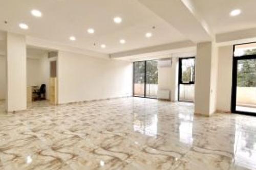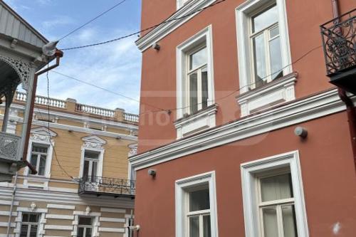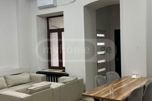 For rent as an office in Rustkhveli, in Besik #4, 100 sq.m. Renovated space, kitchen installed, heating and air conditioning installed in the ceiling. 3 bays remodeled 4 ad. with a balcony. It is more suitable for an office.