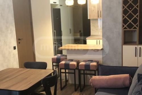 The apartment is located 650 meters from Nadzaladevi metro station, it is newly renovated, furnished and equipped with all necessary equipment for living. On the first floor of the building there is a kindergarten, shops, bank, bus stop.