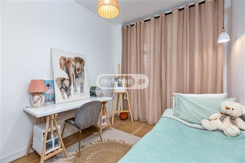 4-room Czech apartment for sale, with 2 bright bedrooms, on Bakradze Street. The apartment is very close to the avenue and at the same time in a quiet area, surrounded by greenery. Fenced yard, secured and children s playground, 24-hour market. The apartment has an extension and in addition to the 2 bedrooms there is a large living room that can be converted into a third bedroom. There is also a wardrobe corner. The apartment has security (alarm). Only built-in furniture and appliances remain in the apartment. The price is $149,000