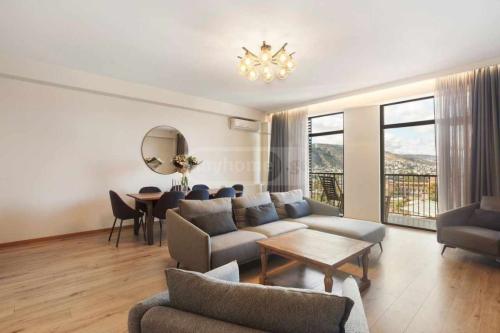 For rent, 41 Ketevan Tsamebuli Street, in a newly built building, on the 5th floor of 5 floors, a bright, cozy apartment, with beautiful views of old Tbilisi. The total area is 225 m2, of which there is a veranda of 125 m2, with furniture, appliances, and a parking space.