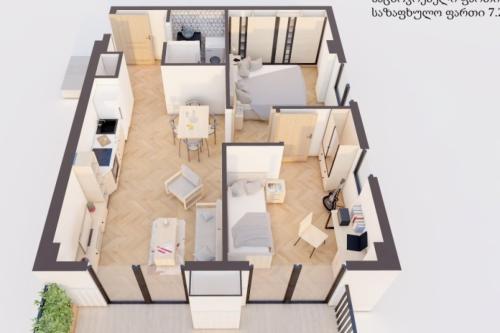 როექტი დასრულებულია. შესაძლებელია რემონტზე დღესვე შესვლა. ასევე შესაძლებელია 2 საძინებლიანად გადაკეთებაც.გთავაზობთ მიმდინარე პროექტს კუპრაძის ქუჩაზე, სვანების ბაზობის მიმდებარედ, „სანი სითი“, კომფორტული ევროპული ტიპის საცხოვრებელი კომპლექსი, მეტროსადგურ „ვარკეთილის“ სიახლოვეს, გაშლილ ტერიტორიაზე მდებარეობს. თანამედროვე სტილის, შედარებით დაბალსართულიანი, კომპაქტური შენობები მყუდრო, წყნარ საცხოვრებელ სივრცეს ქმნის. „სანი სითის“ უბნის დამატებითი უპირატესობა კეთილმოწყობილი ინფრასტრუქტურა და მოწესრიგებული საერთო სარგებლობის სივრცეებია.კომპლექსს ემსახურება მიწისქვეშა და მიწისზედა ავტოსადგომები.