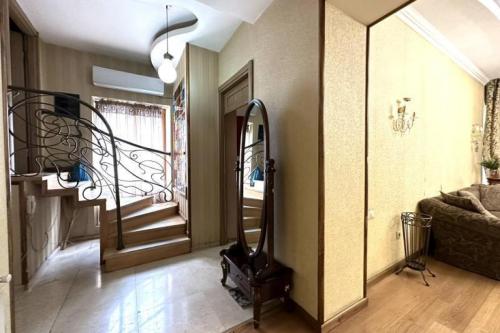 (Auto Translate!) Triplex type apartment for sale in Metekhi district, renovated by designer, with furniture, pantry and 34 sq.m. With a basement, it has a small garden that we enjoy. The apartment can also be used for commercial activities (cafe, hotel.
