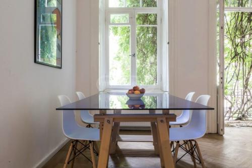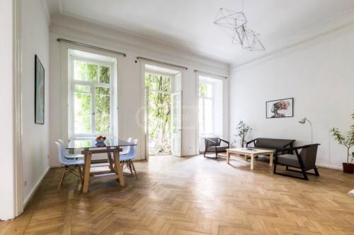 (Auto Translate!) For sale, a large bright south-facing apartment with a balcony in a historic house. The house was built in 1905 and thus has the status of a monument. Large room 45m2, bedroom 13m2, dining room 18m2, kitchen 10m2, bathroom toilet 10m2. 4 meter ceiling height. Original windows and floors. High pitched floor.