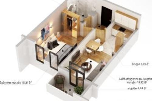 In front of you is a multifunctional complex with a construction volume of 22,000 m2, a modern shopping center with a volume of 10,000 m2 located on two floors, and an 11-story residential building with a construction volume of 12,000 m2 located in an ecologically clean, peaceful and safe environment with ultra-modern infrastructure: ✅cinema ''Ea'', ✅safe children's playground ✅ Underground secured parking lot ✅ shopping center with branded stores ✅ TBC Bank ✅ business center Construction will be completed in February 2024