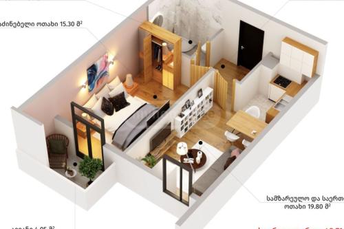 Didi Dighom, the fourth micro-district. On Archile Mefi Street, the building has been built and very little work remains. The amount of utility meters has also been paid (3000 GEL). It is very close to the bus stop, pharmacies and supermarkets. The apartments are on the 10th, 11th and 12th floors. The elevator is being installed