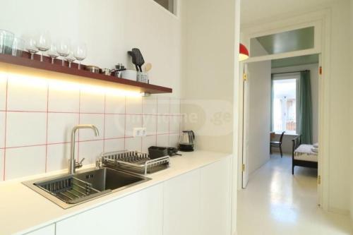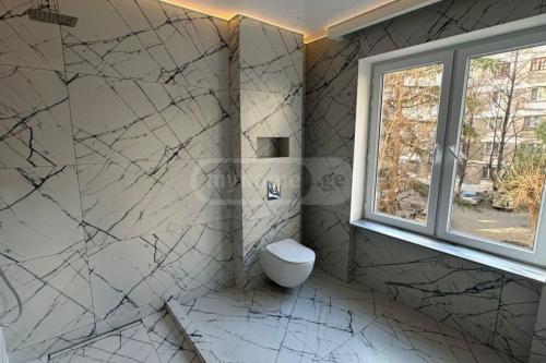 Newly renovated 3-bedroom apartment at Uznadze 79 near the Marjanishvili theater, called "Stalinka". The apartment has a 4 sq.m. balcony and a fireplace....it has parking spaces in the fenced yard. The yard is greened with perennial trees, where there is a children's playground/space. The apartment has a balcony.