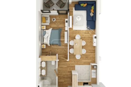 The apartments are equipped with a green frame condition, which means: a) finished exterior and paved entrance b) installed elevator and external windows c) vertical stands of water, natural gas, electric energy and ventilation shafts arranged in each area d) built and plastered interior in the apartment according to the project agreed with the owner partitions e) internal electrical wiring installed in the apartment f) floor stretched with sand-cement solution g) heating pipes installed in the floor