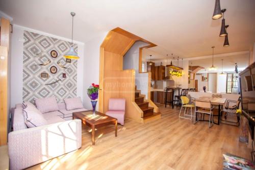 (Auto Translate!) 3-storey private house in a closed yard on Marjanishvili, near Meskhi courts. 4 bedrooms, 3 bathrooms, living room and kitchen with fireplace. Balcony and car park. Central heating, air conditioners in all rooms, internet, super TV, city phone. The yard is closed, dictaphone from the entrance. Can be used as an office or a hotel. Currently for daily rent to foreigners.is a hotel