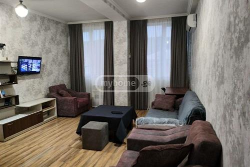 For immediate sale: 3-room, cozy corner apartment in the newly built arch building on Petre Iberi Street, 3 minutes walk from the central road, with high-quality renovation. Central heating (Imergaz), winter-summer air conditioner (Electrolux 50-60 sq.m.), built-in kitchen with gas stove, oven, hood (Hansa), bathroom-toilet with Jaoken tile-metlak, high-quality faucets. Kitchen floor ceramic granite. German laminate, wallpaper. The apartment has a built-in bedroom closet, an entrance closet. Two TVs (Samsung, Panasonic), washing machine (Bosch), large balcony. It is the 2nd floor, but it is considered as the 1st floor for living. The building entrance is coded and intercom, equipped with cameras. The apartment is for sale with full furniture and appliances
