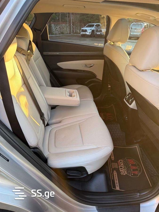 Hyundai Tucson Limited (სრული კომპლექტაცია), გამოშვებულია 2023 წლის ნოემბერში (2024 მოდელის წელი). მანქანა არის იდეალურ მდგომარეობაში, არ ყოფილა ავარიაში ან შეკეთებული. შეძენილი პირადად ჩემთვის. იყიდება ხანგრძლივი გამგზავრების გამო. ძრავი 2.5 ლ, ბენზინი, 8-საფეხურიანი ავტომატური გადაცემათა კოლოფი, სრული ამძრავი (AWD). ფერი — ნაცრისფერი მეტალიკი, სალონი — თეთრი ტყავი. წინა სავარძლები — ვენტილაციით და გათბობით, უკანა — გათბობით. უსაღებო წვდომა, ელექტრო საბარგული, ორზონიანი კლიმატ-კონტროლი, პანორამული სახურავი ლუქით, ციფრული დაფა, Apple CarPlay / Android Auto, პრემიუმ აუდიოსისტემა Bose. სრულიად LED განათება, 360° კამერები, გვერდითი კამერები სარკეებში (ჩართულია მოსახვევისას), ბრმა ზონის კონტროლი, ადაპტური კრუიზ-კონტროლი, ზოლის შენარჩუნება (ავტონომურად მართავს), შეჯახების პრევენცია (მათ შორის ფეხით მოსიარულეებზე), პარკინგის სენსორები, წვიმისა და სინათლის სენსორები. საშუალო ხარჯი: ქალაქში 8–10 ლ/100კმ, ტრასაზე 7–8 ლ/100კმ, საშუალო — 8.5 ლ/100კმ. ახლახან შეცვლილია ზეთი, ხუნდები და ამორტიზატორები. უკანა კარი და საწვავის თავსახური შეღებილია მცირე კოსმეტიკური დაზიანების გამო. მანქანა სრულად მოვლილია — დაჯექი და იარე. მცირე ნაკაწრები და სკოლები კორპუსზე, მარჯვნივ საბარგულის რეზინა ოდნავ იკეცება, არ არის პლასტმასის საფარი მარჯვენა მინის ნაწილზე (ფოტოზე ჩანს), სარკეები ავტომატურად არ იკეცება (ამერიკული ვერსიის თავისებურება). შესაძლებელია გაყიდვა ნომრებით. VIN: 5MNJJE3DE1RH346973.