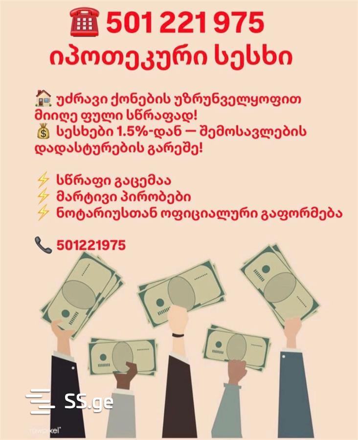 თანხის გაცემა — ქონების ნახვიდან 1 საათში